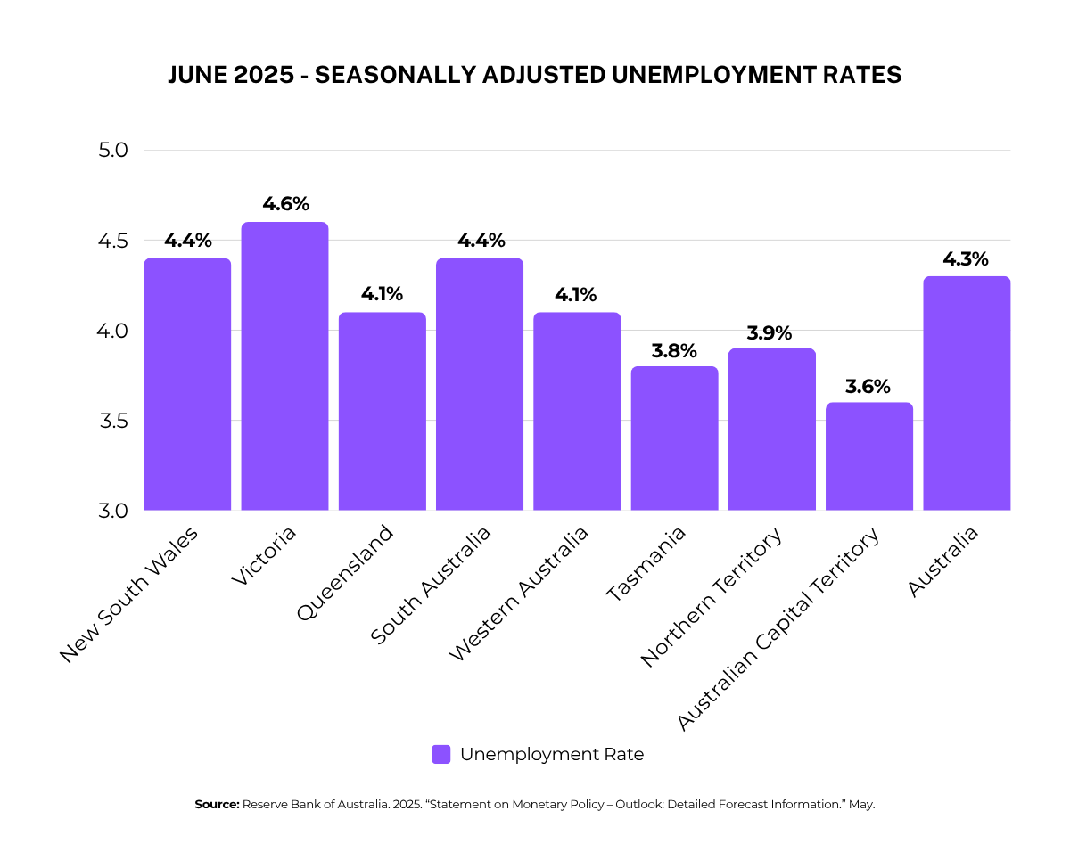 The Reserve Bank of Australia acknowledged the labour market slowdown in its July monetary policy statement. While it still expects unemployment to remain in the low 4s through to 2026, it described current risks as “finely balanced”.